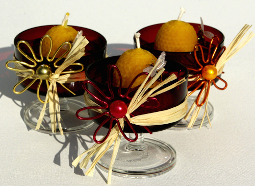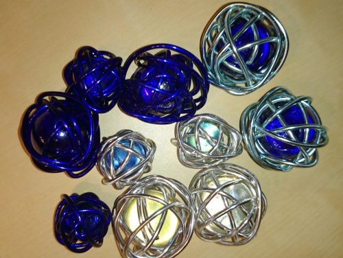 Glasmurmeln umwickelt mit Aludraht, Bienenwachskerze