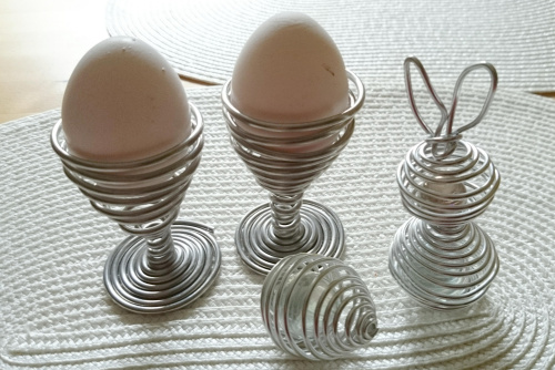 Eierbecher Aludraht, Ei und Hase Aludraht mit Glasmurmel